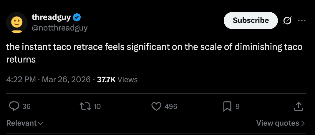 It was another rough week for crypto and the broader market, and many of the talking heads are speculating Trump is waiting for the weekend before delivering bad news. Oil prices remain elevated as it seems like the Iran-US ceasefire negotiations have produced a lot more noise than progress, which probably comes as a surprise to nobody.